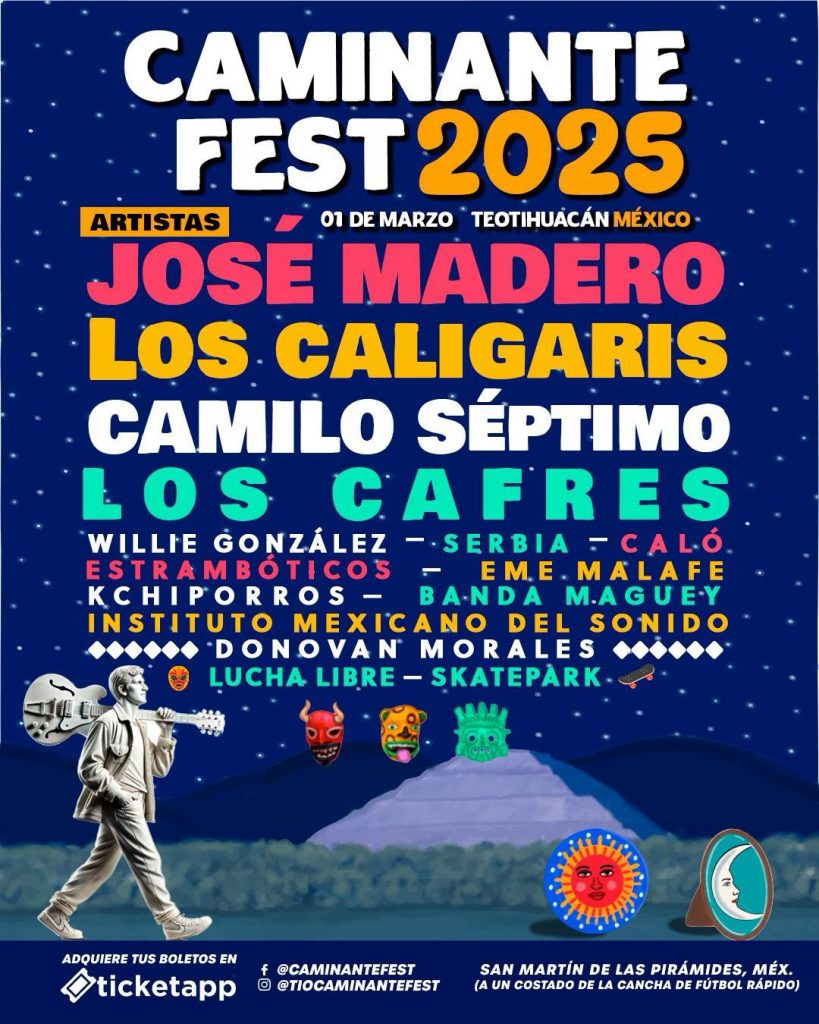 El día sábado 1 de marzo de 2025 las majestuosas Pirámides de Teotihuacán se convertirán en el escenario de uno de los festivales más esperados del año: El Caminante Fest. Este evento reúne un cartel de artistas que han llenado escenarios en la Ciudad de México y ahora se unen para ofrecer una experiencia única en un entorno histórico y cultural sin igual.